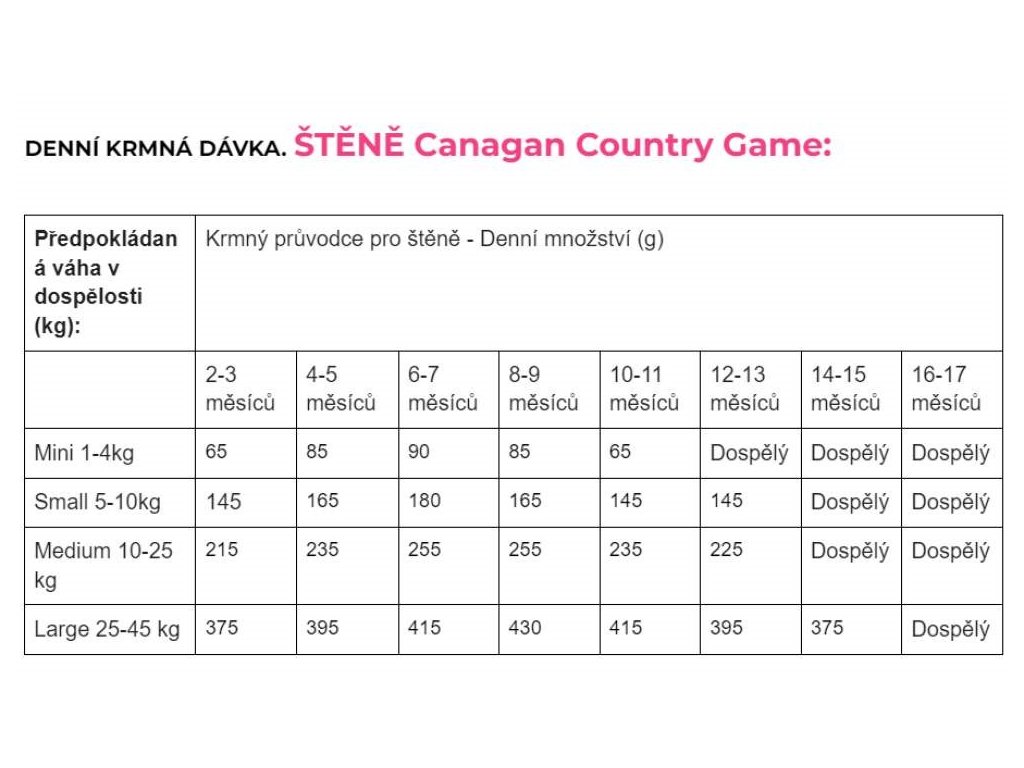 Neobsahuje obiloviny: Canagan je velmi chutný, lehce stravitelný, výživný a lahodný. Vhodný pro štěňata od odstavu a dospělé psy. Neobsahuje umělá barviva, konzervační látky ani aromata.