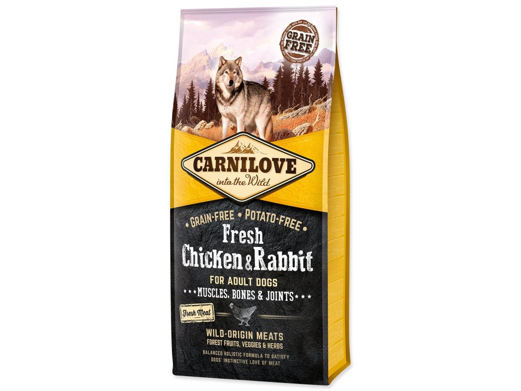 Carnilove Fresh Kuře & Králík byl navržen s respektem k původní přirozenosti psů tak, aby jim poskytl vyváženou stravu bohatou na čerstvé maso v kombinaci s různými druhy zeleniny, ovoce a bylin. Návrat k přirozené stravě zlepšuje trávení psa a podporuje správný růst svalů a chrupavek. Extrakty z mušlí pomáhají udržet silné kosti a zdravé klouby.
