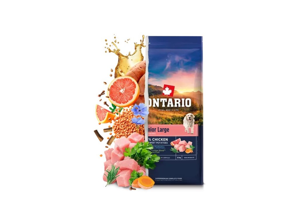 Ontario Senior pro velká plemena je superprémiové, kompletní krmivo určené pro starší psy velkých plemen. Toto krmivo je speciálně navrženo pro starší psy, kteří potřebují zdravé trávení, silné svaly, zdravé klouby a lesklou srst. Nízkotučné kuřecí maso (26 % čerstvé a 17,5 % dehydrované) ve spojení s batáty a pohankou poskytuje vyváženou a snadno stravitelnou výživu, která podporuje celkovou vitalitu a zdraví vašeho psa.