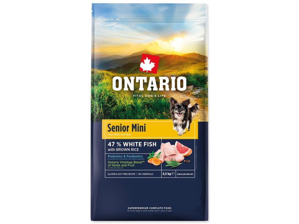 Ontario Senior pro malá plemena – Bílá ryba s hnědou rýží pro zdravé stárnutí a vitalitu